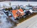 Střecha je pokryta pálenými taškami, dům je vytápěn tepelným čerpadlem, což zajišťuje nízké provozní náklady a stabilní teplotu. Teplovodní podlahové vytápění v přízemí a radiátory v podkroví zvyšují komfort, zatímco kachlová kamna ve společenské části přinášejí atmosféru, kterou pocítíte na první dotek. Podlahy jsou řešeny - keramická dlažba v přízemí a koupelnách, dubové parkety v pokojích, garáž a půda s pevným cementovým potěrem.