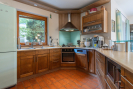 Kvalitní materiály a design: Dům je postaven z prvotřídních materiálů, disponuje dřevěnými eurookny, střešní krytina je z pálené glazurované tašky. V interiéru najdete kompletně vybavenou kuchyňskou linku a krbová kamna na dřevo o výkonu 10 kW.