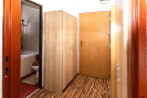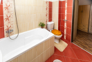 Poslední místností je ložnice (18 m2), z níž se přes menší chodbičku (3,5 m2) se šatními skříněmi, vchází do druhé koupelny s WC, vanou a umyvadlem.