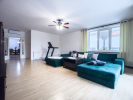 Interiér nabízí nadstandardní jídelnu a kuchyni, ohromný obývací pokoj s přímím vstupem na terasu, dvě prostorné neprůchozí ložnice, praktickou pracovnu, koupelnu s toaletou a další sam. toaletu.