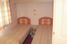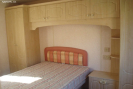 V zadní části mobilheimu se nachází větší prostorná ložnice s manželskou postelí, vestavěnou skříní a velkou šatní skříní se zrcadlem.