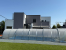 Samostatně stojící dvoupodlažní dům je postaven z kvalitního konstrukčního systému Velox, má plochou střechu s fóliovou krytinou a plastová izolační okna s trojsklem. Interiér je řešen moderně a prakticky, podlahy obytných místností pokrývá velkoformátová dlažba. Dispozice 6+kk nabízí dostatek prostoru i pro početnější rodinu - prostorný obývací pokoj s kuchyní a jídelnou, ložnice, dětské pokoje, pracovnu či hostinský pokoj podle potřeb nových majitelů.