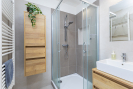 V patře domu o ploše 51,82 m² se nachází hlavní ložnice s vlastní koupelnou se sprchovým koutem, dále druhá koupelna s vanou, dva dětské pokoje a samostatná šatna. Interiér domu je vybaven plovoucími podlahami a keramickou dlažbou, které podtrhují moderní charakter nemovitosti.
