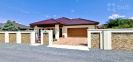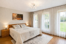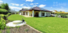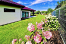 Centrální obytný prostor je doplněn krbem a kuchyní se spotřebiči nejvyšší kvality a pracovní deskou ze švédské žuly, přičemž velkoformátové prosklené portály přirozeně propojují interiér s exteriérem. Terasa, kryté venkovní posezení a pečlivě upravená zahrada plná hortenzií tak plynule navazují na hlavní obytnou část domu a vytvářejí ideální místo pro odpočinek i společné chvíle s rodinou.