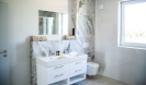 Dům je vybaven kvalitními materiály a prvky, které potěší oko i praktičností - vinylové podlahy, moderní interiérové dveře, plastová okna s izolačním trojsklem, designová sanita značky SAT, baterie SIKO a elegantní obklady Rako Betonico. O vytápění se stará tepelné čerpadlo typu vzduch-voda od značky Willy, což znamená nízké provozní náklady a energetickou efektivitu.