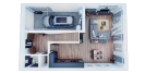 V přízemí se nachází garáž a hlavní obytná zóna - srdce domu - tedy kuchyňský kout propojený s velkorysým obývacím prostorem o výměře 42 m2. V patře následně klidová část, tedy 3 pokoje, koupelna se sprchovým koutem i vanou a dostatek úložného prostoru. Velká okna přinášejí do interiéru příjemné světlo a umožňují přímý vstup na soukromou zahradu o rozloze 212 m2. Ta je jako stvořená pro víkendová grilování, dětské hry nebo klidné večery pod širým nebem.