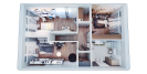 V přízemí se nachází garáž a hlavní obytná zóna - srdce domu - tedy kuchyňský kout propojený s velkorysým obývacím prostorem o výměře 42 m2. V patře následně klidová část, tedy 3 pokoje, koupelna se sprchovým koutem i vanou a dostatek úložného prostoru. Velká okna přinášejí do interiéru příjemné světlo a umožňují přímý vstup na soukromou zahradu o rozloze 212 m2. Ta je jako stvořená pro víkendová grilování, dětské hry nebo klidné večery pod širým nebem.