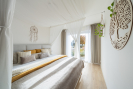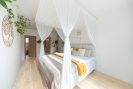 Dispoziční řešení je 5+kk s podlahovou plochou 173 m2, zastavěná plocha je 222 m2. Všechny ložnice mají vlastní výstup do zahrady a disponují vlastní šatnou. V hlavní ložnici se nachází soukromá koupelna s WC a vanou. Dále v domě naleznete prostorný obývací pokoj s krbovými kamny a moderní kuchyňskou linkou s jídelní částí. Kuchyňská linka je řešená velice nadstandardně, má například 2 vestavěné myčky a 2 mrazáky. Dům dále disponuje pracovnou, další koupelnou s WC a sprchovým koutem, samostatným WC v předsíni a technickou místností.