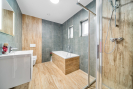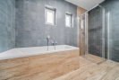 prostorná koupelna s vanou i sprchovým koutem a WC