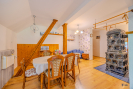 Celková užitná plocha nemovitosti činí 513 m2 s pozemkem 1681m2. V současnosti jsou k dispozici tři plně vybavené apartmány o dispozici 4+kk s kapacitou 18 lůžek, což novému majiteli umožňuje okamžitě apartmány nabízet ke krátkodobým pronájmům. Další dva apartmány lze vybudovat v podkroví a jeden v přízemí, což by novému majiteli značně rozšířilo investiční možnosti. Každý apartmán má vlastní kachlová kamna, další jsou ve společenské místnosti a chodbě. Alternativou pro vytápění je elektrický kotel, ohřev vody zajišťuje bojler, pitná voda je ze studny. Součástí vybavení je potom wellnes zóna obsahující saunu a ochlazovací bazének.