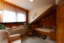 V mezipatře je další pokoj se sníženým stropem, například pro přespání dvou dospělých nebo až čtyř dětí.