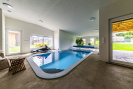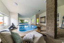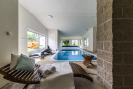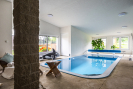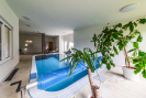 Hlavní dominantou je nadstandardní rodinný dům o téměř 400 m², který nabízí veškerý komfort moderního bydlení. Dům je vybaven rekuperací, klimatizací, solárními kolektory a krytou terasou, ze které se otevírá krásný výhled do krajiny. Součástí domu je také krytý bazén o rozměru 6 × 3 metry s protiproudem a slanou vodou, napojený na solární ohřev.