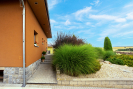 Na pozemku je také retenční nádrž na dešťovou vodu o objemu 30 m³, což zajišťuje pohodlné a ekologické zalévání zahrady během celého roku.