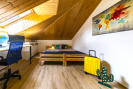 V přízemí najdete prostorný obývací pokoj s krbem, propojený s novou kuchyní, dvě ložnice, samostatné WC a koupelnu. V patře, které prošlo kompletní rekonstrukcí v roce 2020, se nacházejí čtyři samostatné pokoje, z toho jeden se šatnou, příprava na kuchyň, další koupelna s vanou, sprchovým koutem, dvoj umyvadlem a samostatné WC.