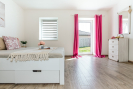 Pokud preferujete zachovat dispozici 3+kk, nabídne dům dvě samostatné ložnice s vlastními koupelnami - jedna s vanou a druhá se sprchovým koutem. Ložnice jsou umístěny na opačných stranách domu, což zaručuje maximální soukromí.