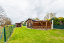 Součástí pozemku o velikosti 527 m² je krásně upravená zahrada se zastřešenou terasou a grilem, dřevěným domkem, skleníkem a záhony - ideální místo pro odpočinek i zahradničení.