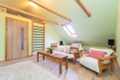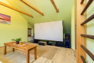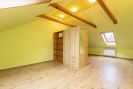 V přízemí domu se nachází prostorná kuchyň propojená s obývacím pokojem, což vytváří ideální prostor pro společné chvíle rodiny. Dále zde najdete dva pokoje, komoru, koupelnu a toaletu. Podkroví nabízí další dva pokoje vhodné jako ložnice či dětské pokoje, šatnu, komoru a útulné domácí kino s velkým projekčním plátnem. Interiér je světlý, vzdušný a připravený k okamžitému užívání, přičemž koupelna čeká na modernizaci dle představ nového majitele.