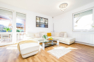 Světlý obývací pokoj s kuchyní a výstupem na terasu