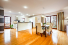 Po vstupu do domu Vás přivítá prosvětlená chodba, která Vás přivede do obývacího prostoru s moderní kuchyní, který je ideální pro rodinné setkávání. Kuchyně je vybavena moderními spotřebiči a nabízí dostatek prostoru pro přípravu jídel.