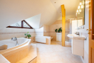 Dům se rozkládá na třech podlažích, má celkem čtyři ložnice, dvě koupelny s toaletou, technickou místnost, komoru a šatnu.