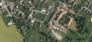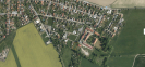 Za vzrostlými stromy je výběh pro koně a zahrádkářská kolonie.