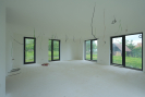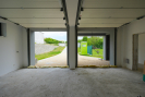 Přízemí tvoří velkorysá dvojgaráž se dvěma samostatnými vraty, sklad, vstupní hala, koupelna s WC a opravdu rozsáhlý obývací prostor s kuchyňským koutem a vstupy na zahradu a budoucí terasu.