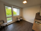 Byt se nachází v 6.NP bytového domu s výtahem a jeho dispozici tvoří vstupní chodba, koupelna se sprchovým koutem a toaletou, kuchyně a ložnice. Kuchyňská linka je vybavena vestavěnou varnou deskou, pečící troubou a digestoří, dále je v bytě lednice s mrazákem, jídelní stůl a židle, v koupelně automatická pračka. K bytové jednotce náleží sklep, parkování zajišťuje přilehlé parkoviště před domem.
