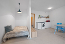 Vybavení: postel, jídelní stůl, 3ks židle, sedací souprava, lampa, skříňka, prostorná šatna, dvojvařič, pračka.