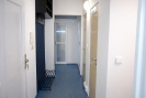 Součástí bytu je vstupní chodba s úložnými prostory a samostatná šatna či komora o velikosti přibližně 3 × 1,5 m, která poskytuje nadstandardní úložný prostor. Koupelna je vybavena vanou, umyvadlem a pračkou, toaleta je samostatná. Byt má bezpečnostní vstupní dveře. K bytu náleží také sklepní kóje o velikosti cca 3 × 1,5 m a v domě je k dispozici kolárna nebo kočárkárna.