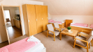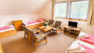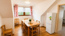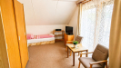 Jedná se o podkrovní byt, který je jedinou bytovou jednotkou v podkroví domu, zatímco v prvním nadzemním podlaží se nacházejí další dva byty. Dispozičně je byt řešen tak, že po vstupu po schodišti se dostanete do centrální části bytu, kde se nachází kuchyně. Kuchyně tvoří hlavní obytný prostor uprostřed bytu, odkud je přístup do jednotlivých pokojů - vlevo se nachází větší pokoj a z druhé strany menší pokoj. Součástí bytu je koupelna se s vanou a toaletou. Byt je vybaven dle fotografií, lze vystěhovat nábytek dle potřeb nájemce. Dům je zateplen a vybaven novými okny, což přispívá k příjemnému a úspornému bydlení. K domu náleží vlastní parkoviště, pozemek není oplocen.