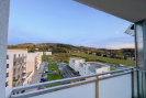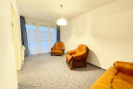 - světlý obývací pokoj s rozkládací pohovkou a vstupem na lodžii.