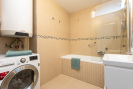 Dispozice 2+kk, prostorná chodba s dostatkem úložných prostor, koupelna s vanou s praktickou zástěnou a novou pračkou se sušičkou, samostatná toaleta, obývací pokoj s kuchyňským koutem (nová lednice s mrazákem, trouba, varná deska, digestoř, mikrovlnná trouba, základní kuchyňské vybavení nože, příbory, hrnce, hrnečky, skleničky), ložnice s postelí a skříněmi, psací stolek. K bytu náleží sklep (4m2).