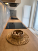 obytný pokoj s kuchyňskou linkou a vstupem na terasu