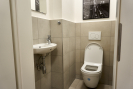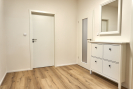 V chodbě je vestavná skříň a botník. Šatna má úložné prostory. V koupelně je vana, umyvadlo, zrcadlová skříňka, topný žebřík, pračka se sušičkou, toaleta s umyvadlem je samostatná.