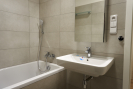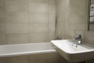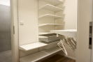 V chodbě je vestavná skříň a botník. Šatna má úložné prostory. V koupelně je vana, umyvadlo, zrcadlová skříňka, topný žebřík, pračka se sušičkou, toaleta s umyvadlem je samostatná.