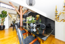 Byt nabízí nadstandardní kombinaci prostoru, komfortu a soukromí, což je v této lokalitě skutečně výjimečné. Přestože se nachází přímo v centru města, ložnice a pokoje v patře jsou orientovány do vnitrobloku, díky čemuž je byt velmi klidný a nerušený městským provozem.