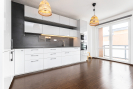 Obývací pokoj je propojen s kuchyňskou částí, která je vybavena moderní kuchyňskou linkou. Díky velké terase o rozloze 16 m2 si užijete krásný výhled na celé město a okolí. Orientace na jih zajišťuje dostatek slunečního světla a příjemnou atmosféru po celý den.