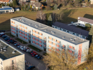Vytápění i ohřev vody jsou řešeny centrálním dálkovým rozvodem.