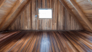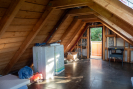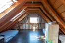 V podkroví je připraven prostor k dokončení - vyvedená je příprava pro klimatizaci. Po zateplení a obložení lze vytvořit další obytnou část, například ložnici nebo pokoj i pracovnu.