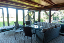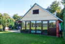 Součástí pozemku je chata o rozměrech 7 × 6 metrů. Stavba je částečně zděná, druhou polovinu tvoří prosklená konstrukce z oken a dveří, která přirozeně propojuje interiér s exteriérem a dodává prostoru dostatek světla. Před chatou se nachází terasa, ideální pro posezení s výhledem do zahrady.