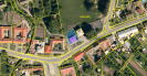 Možnost parkování aut vedle budovy. Za budovou je neoplocená zahrada.
