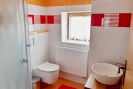 Byt je vytápěný tepelným čerpadlem, ohřev vody řešen bojlerem.