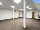 Větší jednotku (75 m2) tvoří hlavní prostorná místnost vhodná jako otevřený pracovní prostor, klientská zóna nebo sál pro lekce a školení. Dále je zde samostatná, zrekonstruovaná kuchyňka a menší místnost využitelná jako sklad, archiv, šatna nebo klidné zázemí.