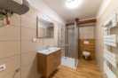 koupelna s umyvadlem, wc, sprchovým koutem a místem na pračku