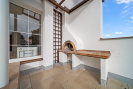 2. patro nabízí čtyři samostatné pokoje, každý se vstupem na menší terasu, koupelnu s wc, vanou a sprchovým koutem a komoru.