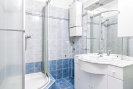 Koupelna je zděná, se sprchovým koutem, je zde umístěn plynový kotel pro ohřev vody.