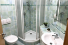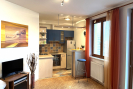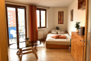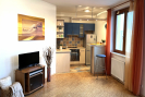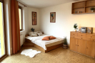 Byt sestává z předsíně (3,5 m2,) s větší vestavěnou skříní a úložnými prostory nad dveřmi po celé délce předsíně, z koupelny (3,8 m2) s WC, se sprchovým koutem, pračkou a skříňkami pod umyvadlem a z velmi světlého obývacího pokoje spojeného s kuchyňským koutem (23 m2). Obývací místnost je vybavena postelí, s praktickými úložnými prostory, komodou, skříňkou, menší televizí a plně vybaveným kuchyňským koutem, jehož součástí je lednice s mrazákem, elektr. varná deska, elektr. trouba, mikrovlnná trouba i myčka.