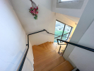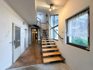 Z prostorné chodby vede ocelové schodiště do patra, kde je další samostatná bytová jednotka s kuchyní, koupelnou a oddělenou toaletou.