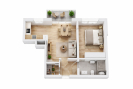 Dispozice je praktická, čistá a promyšlená tak, aby byt nepůsobil jen jako soubor metrů čtverečních, ale jako místo, kam se budete rádi vracet.
