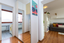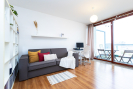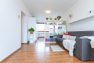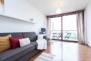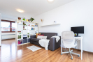 Byt se nachází ve vyšším patře moderního domu s výtahem. Dispozice je prakticky řešená - obývací pokoj s kuchyňským koutem nabízí dostatek prostoru pro posezení, práci i relax. Velká francouzská okna zajišťují dostatek světla po celý den a přímý vstup na terasu, kde si můžete užít ranní kávu nebo klidné večery s výhledem do zeleně i na město. Vybavení je možné zanechat.